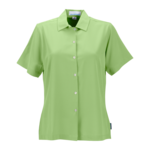 Want an ?easy-does it? atmosphere, but need a serious performing shirt? Our resort-style camp shirts are machine washable, breathable and wick moisture to keep you remarkably cool. 92% polyester/8% spandex, 4� oz. Vansport? moisture management poplin body, UV protection, convertible notched lapel collar, continuous-button front placket, polished etched buttons, bust darts, single-needle top-stitching, hemmed short sleeves, back yoke, curved-hem bottom with tailored side vents, replacement button. Imported. XS-3XL