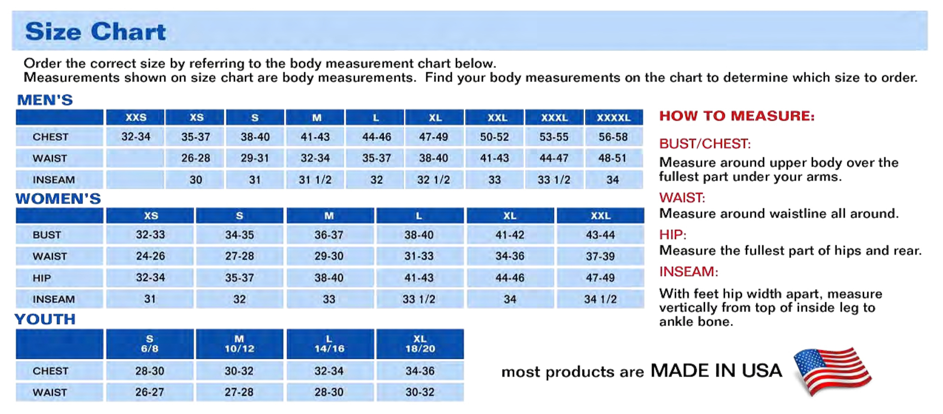 Chest 32-33 34-35 36-37 38-40 41-42